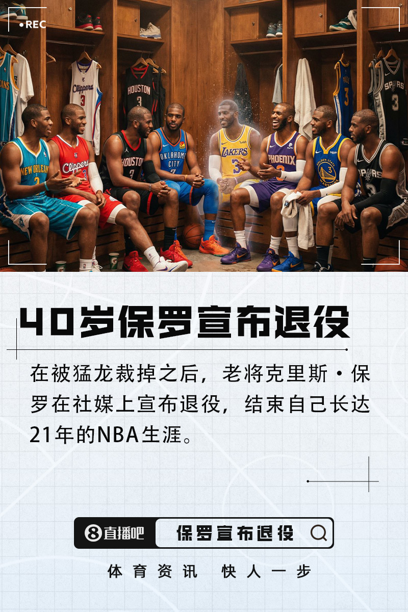 2月14日讯 NBA球星克里斯·保罗在社媒宣布退役,结束21年职业生涯。